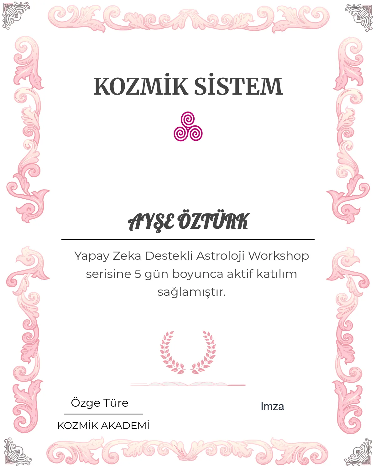 Bu 6 günlük workshop programı, geleneksel astrolojinin ve numerolojinin kadim bilgisini, yapay zekanın modern analiz gücüyle birleştiren, yenilikçi ve özgün bir program olarak tasarlandı.